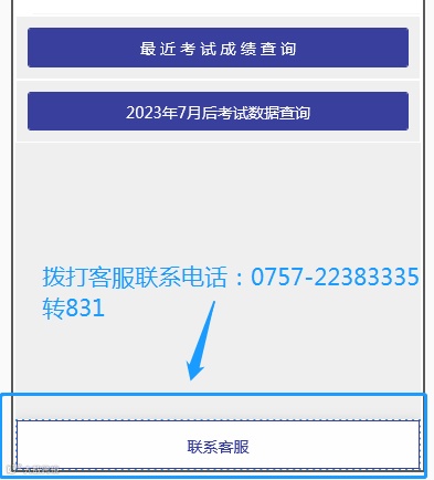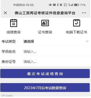 查询平台首页能查询“最近考试成绩”和“2023年7月后考试数据”。