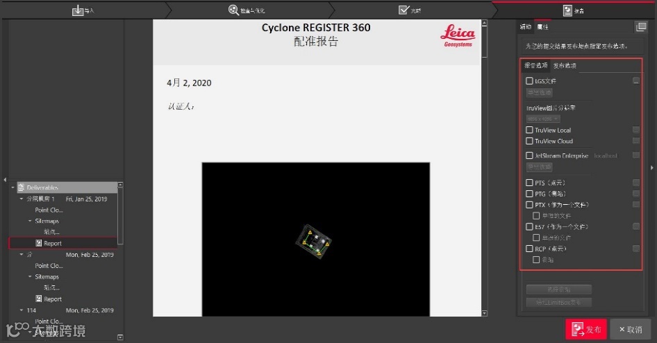 Cyclone REGISTER 360可以发布LGS、PTS、PTG、PTX、E57、RCP多种点云格式,以及以Truview、JetStream等形式实现数据成果共享,数据成果丰富,满足用户的不同应用需求。