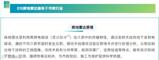 传统的探测方法在面对这些挑战时存在诸多局限,金属管线探测仪在金属管道探测中表现出色,但对于非金属管道(如塑料管、混凝土管等)则难以有效识别;挖孔法和钻探法虽然能够获取道路结构信息,但是会破坏路面结构,影响道路的正常使用,且修复成本较高。水文地质勘探需要专业的设备和技术人员,操作复杂耗时长,且可能受到地质条件、环境因素等多种因素的影响;而雷达探测技术因其无损、高效的特点,逐渐成为市政探测领域的重要工具。