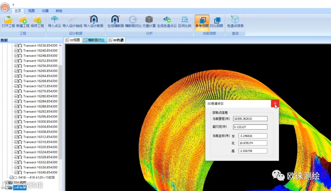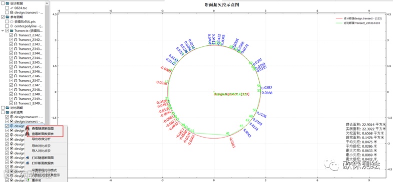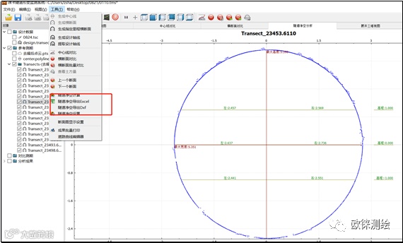 隧道断面测量程序能够实现按设定里程进行断面的测量、放样、隧道随机检测、超欠挖计算等一系列隧道测量工作,配合后处理程序生成丰富的报表,处理流程高度集成化和自动化。