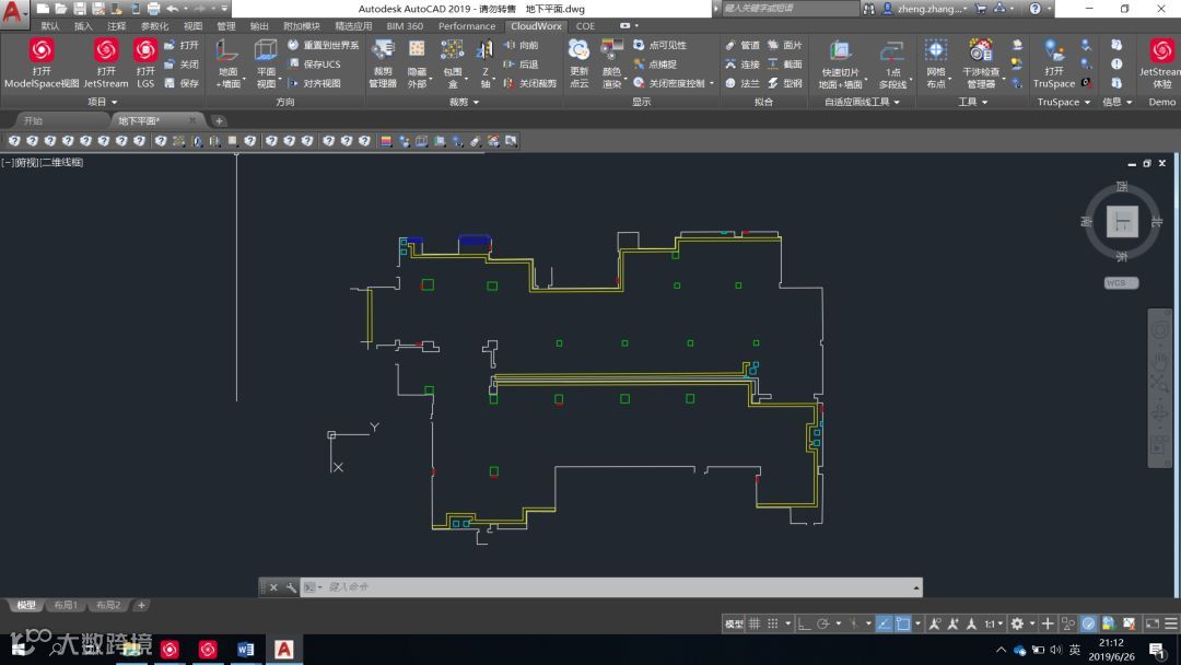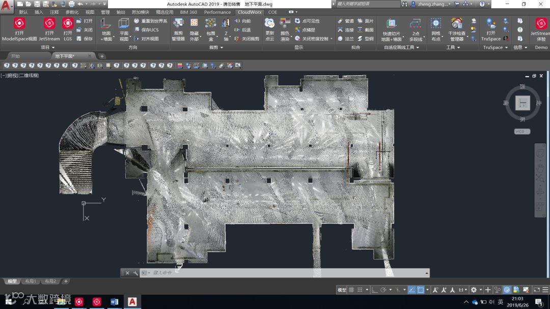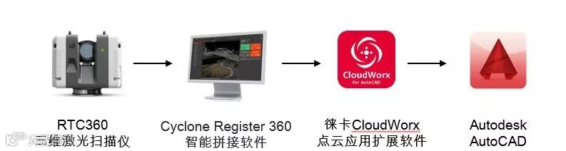 CloudWorx插件不需格式转换,直接加载Cyclone点云,且还具有切片、拟合等功能使得绘制平立面图更加方便、准确