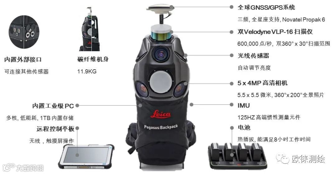 徕卡Pegasus Backpack移动背包扫描系统是一款背负式的移动扫描测量设备,它高度集成了多种测量传感器,可同时采集影像和三维点云数据,以采集效率高、测量模式丰富、应用场景多等特点获得了国内客户的一致好评。