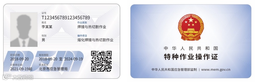 自2019年9月起,应急管理部在全国启用新版特种作业操作证的式样,新版证书分为:PVC卡实体证书、电子证书和纸质打印版证书。PVC卡实体证书根据申请人现实需要发放,电子证书是实体证书的线上形态,与实体证书具有同等法律效力。