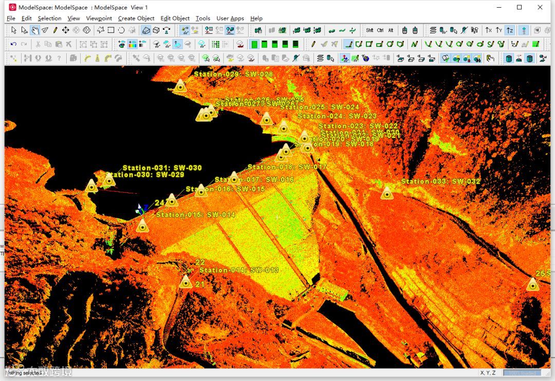 通过多个扫描测站将水电站进行完整的三维扫描。