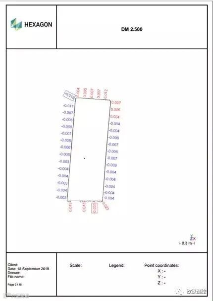 将去噪后的点云数据及梁体的模型文件导入3D Reshaper软件,使用转换功能通过公共点和拟合对点云和模型进行匹配,然后生成模型的中轴线,通过此中轴线建立切面并进行点云与模型的对比生成切面的对比图: