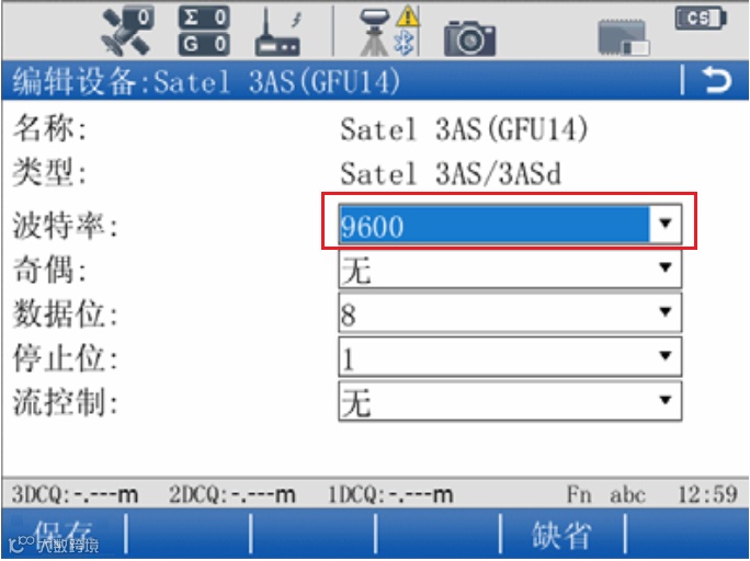 3、检查手簿中选择的电台类型的波特率与电台Port端口的波特率是否一致,若流动站接收电台是SLR3-1则波特率一般选择为9600,如果接收电台是SLR2/SLR5/GFU27 则波特率一般选择为19200。