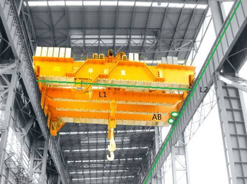 图1中L1代表吊臂中线,L2代表导轨中线,AB代表导轨上的轮子位置