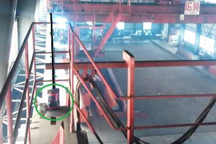 把仪器放到吊臂上(图3),能够看到导轨上方的地方,人员从吊臂上撤离,使用影像功能进行操作,沿导轨中线进行扫描;遇到无法测到的情况后,进行测站拼接,然后移动吊臂继续测量。