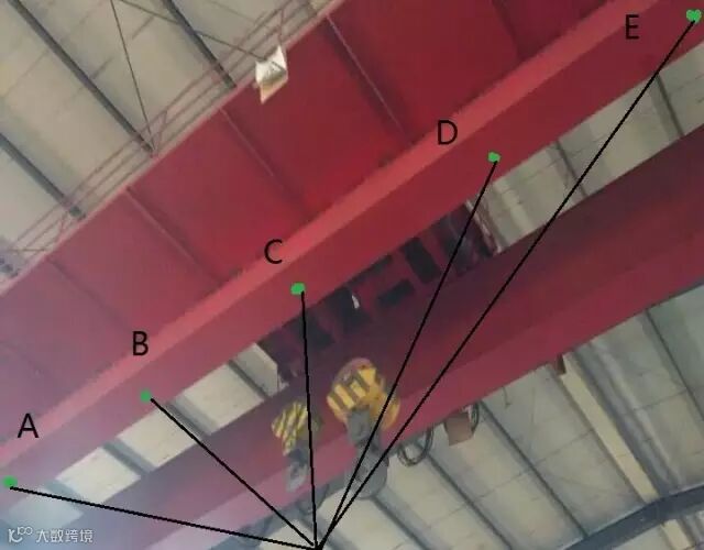 图1是一个典型的起重机械,长时间运行之后,难免会产生一些形变,通过沟通,了解到了日常检测工作中的测量内容,举例如下: