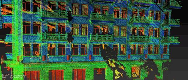 此图为将建筑物立面的点云直接导入CAD的效果图,用户可用来直接绘制立面图