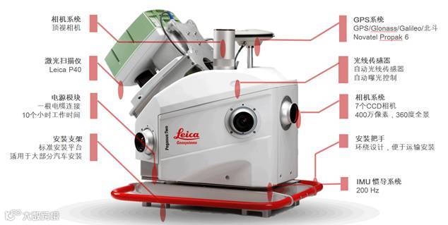 徕卡MLS移动激光扫描系统PegasusTwo完美的将三维激光扫描仪、高清相机、高精度惯导系统、GPS融合在一起,能实时获取高精度的点云及全景影像,并通过强大的后处理软件平台进行数据融合、数据信息提取、线化特征提取等一系列地理信息采集。Pegasus:Two独立于运载工具,具有一套完整的硬件和软件的解决方案,可适用于道路资产管理、数字城市三维建模、交通勘察公路测绘、铁路等不同领域。