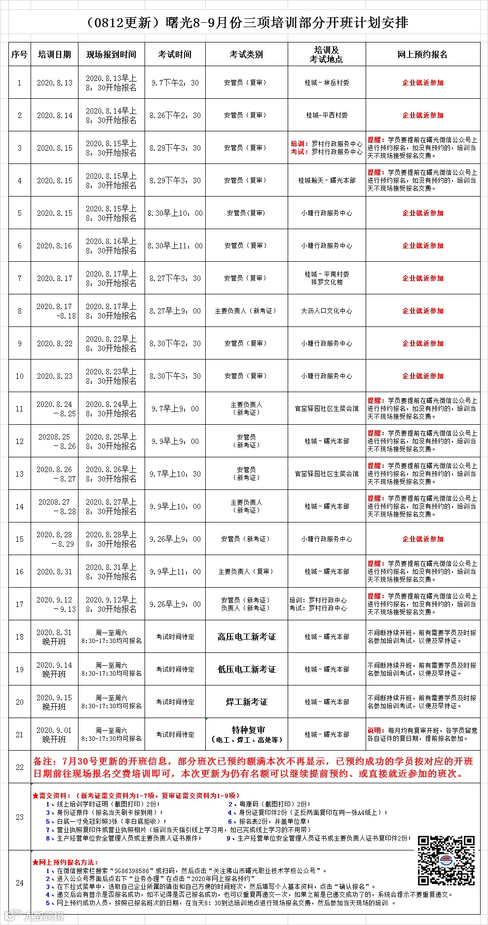 (0812更新)曙光8-9月份三项培训部分开班计划安排 佛山市曙安安全技术服务公司