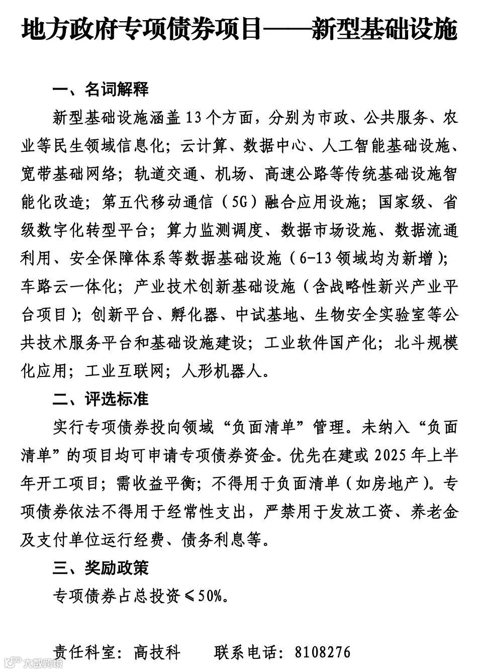 惠企政策申报指南|地方政府专项债券项目——新型基础设施