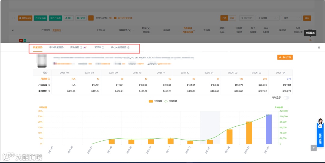 找到竞品后,借助卖家精灵的核心功能拆解竞品策略,才能真正发挥数据价值。通过关键词反查功能,点击竞品列表中的任意ASIN,即可一键解析其所有核心流量词、出单词与广告词,清晰掌握竞品流量来源与关键词布局,直接“借势”优化自身Listing;7x24小时销量与库存监控功能,可实时追踪竞品日销量、销售额、价格波动及库存变化,洞悉其促销节奏与补货策略,避免盲目陷入价格战;AI市场洞察功能,勾选筛选后的核心竞品,点击「市场分析」即可生成报告,不仅呈现市场规模、竞争烈度等指标,还能解读数据关联,比如将竞品高退货率与产品材质关联,给出可落地的改进方向。