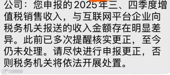 核心问题聚焦于2025年第三、四季度增值税申报收入与平台报送税务机关的数据存在显著差异。