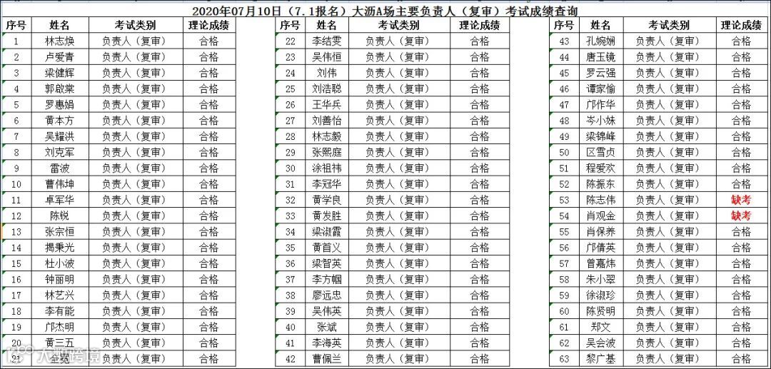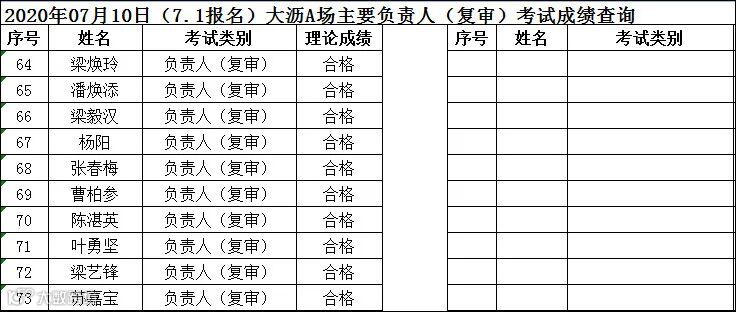 2020.07.10(7.1报名)大沥A场主要负责人(复审)考试成绩