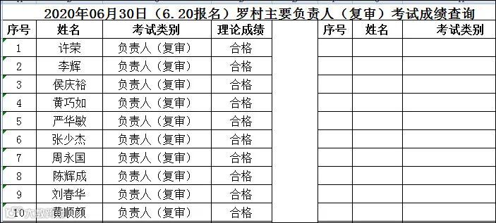 2020.06.30(6.20报名)罗村主要负责人(复审)考试成绩