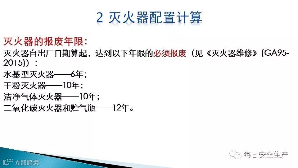 而在有关灭火器的其他法规标准中,我们又可以见到“3+1”或“5+2”的检查维修要求。究竟如何请看下文:
