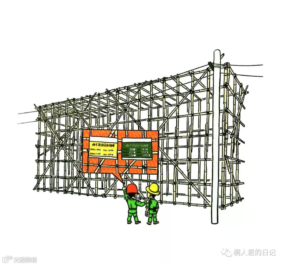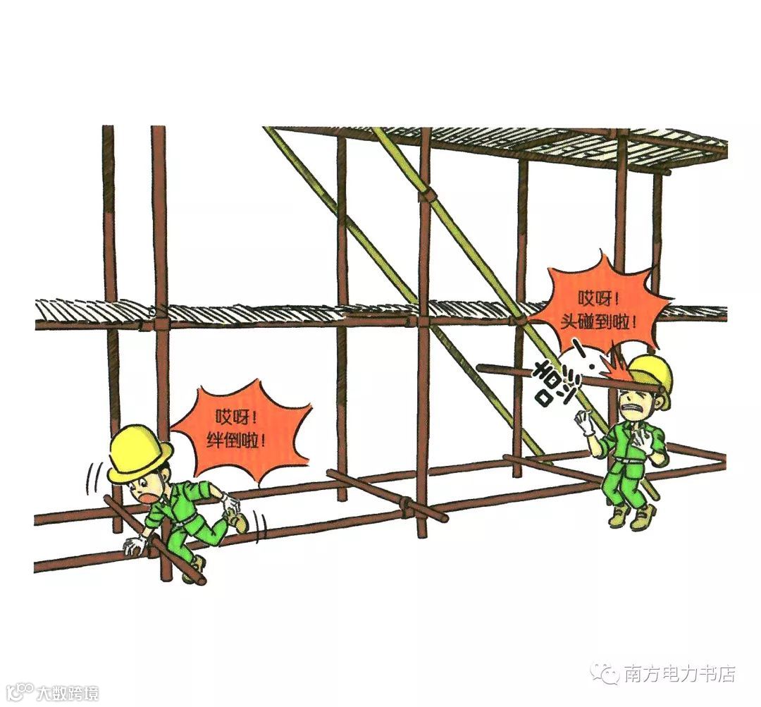 沿横杆或立杆攀爬上下脚手架