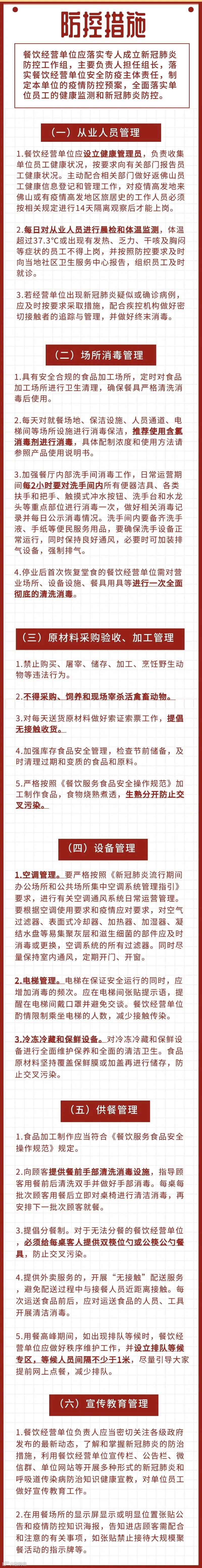 2月28日,佛山市新型冠状病毒肺炎疫情防控指挥部办公室印发佛山市推动餐饮业有序复工复产工作指引(试行)的通知。通知明确: