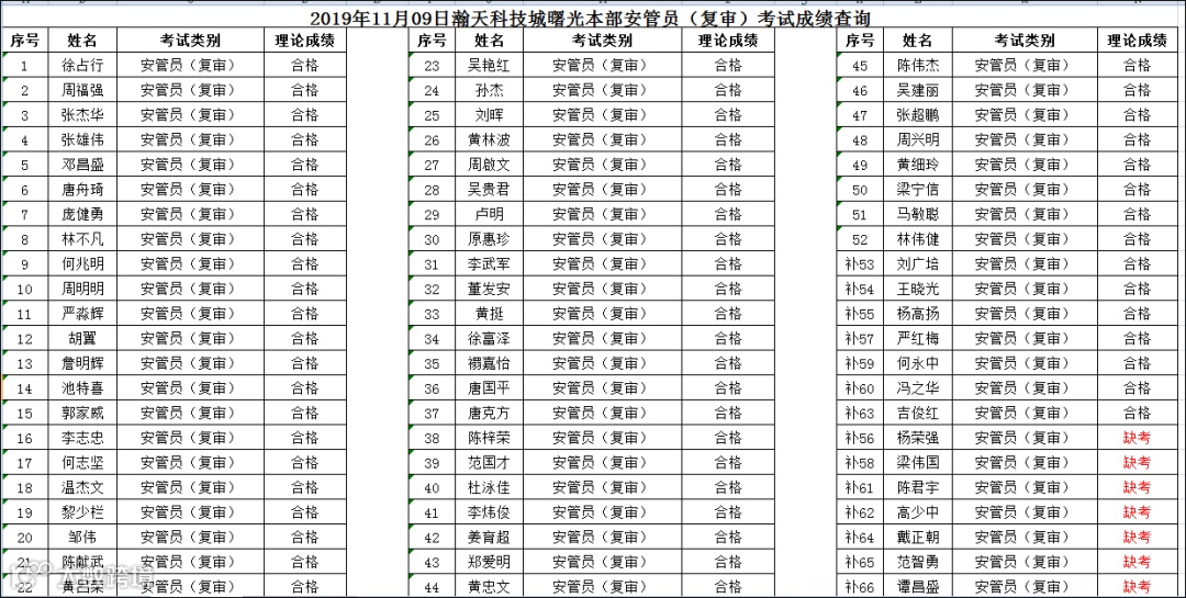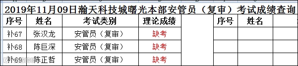 2019.11.09曙光本部安管员(复审)考试成绩查询