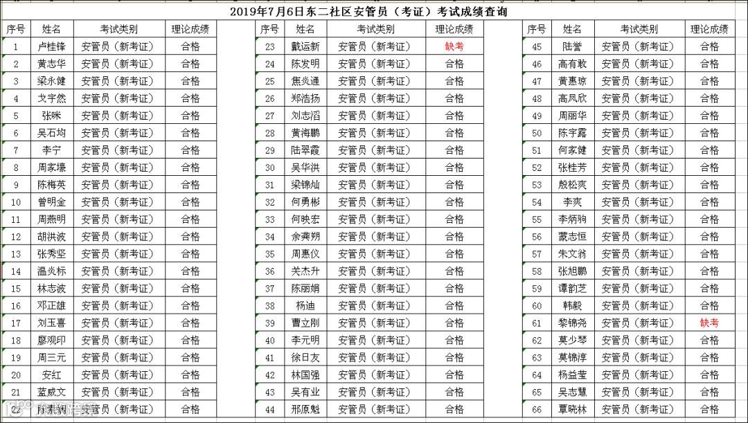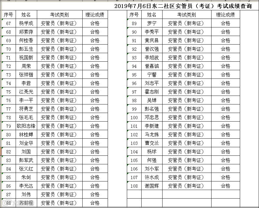 2019.07.06东二社区安管员(考证)考试成绩查询