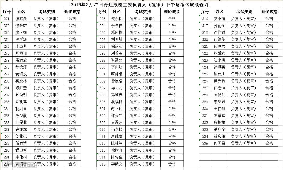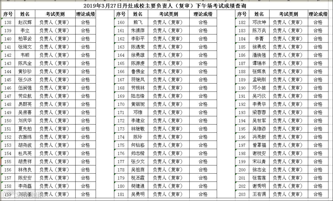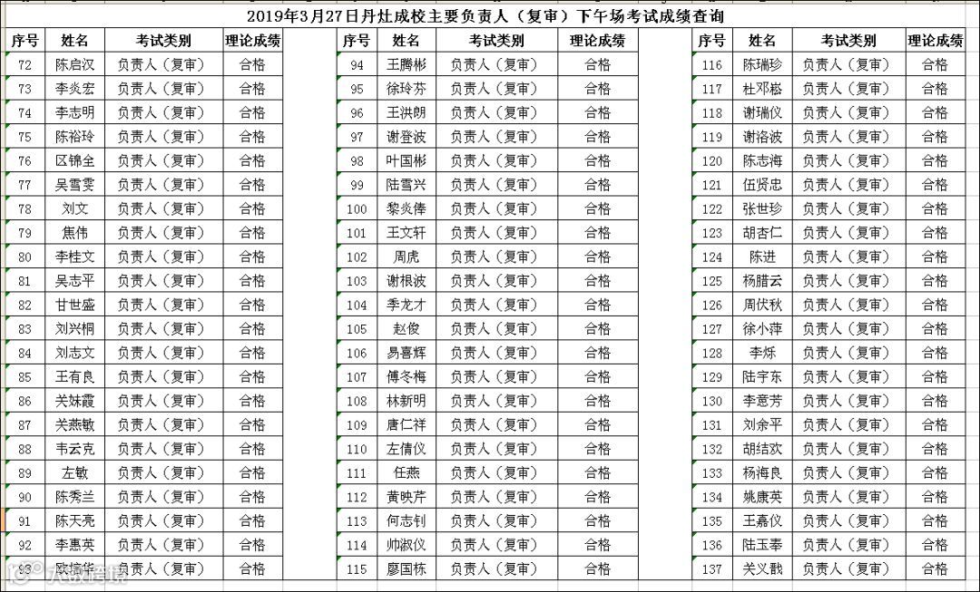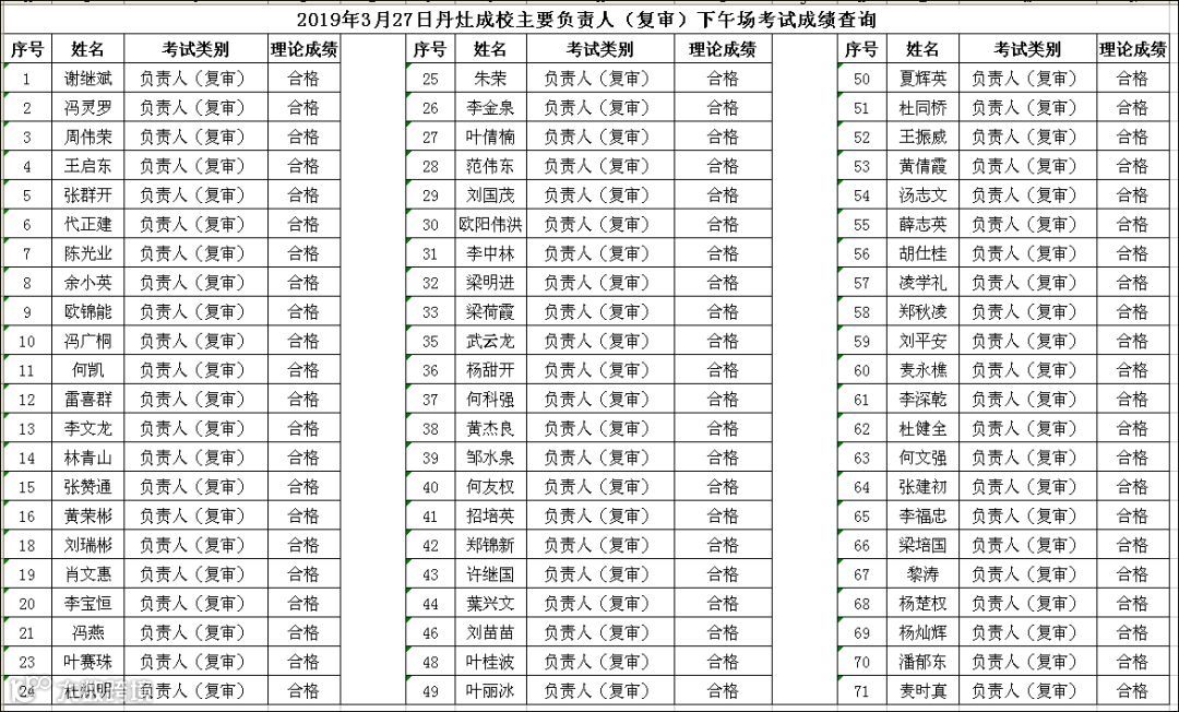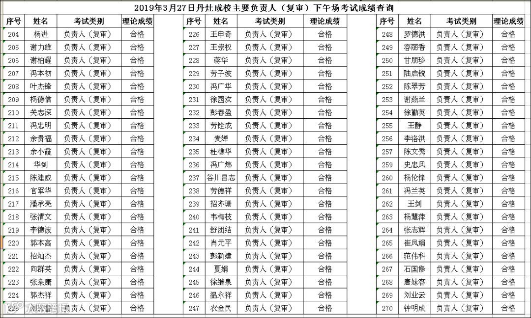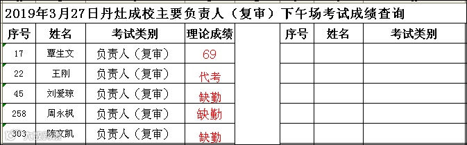 2019.03.27丹灶成校主要负责人(复审)下午场考试成绩查询