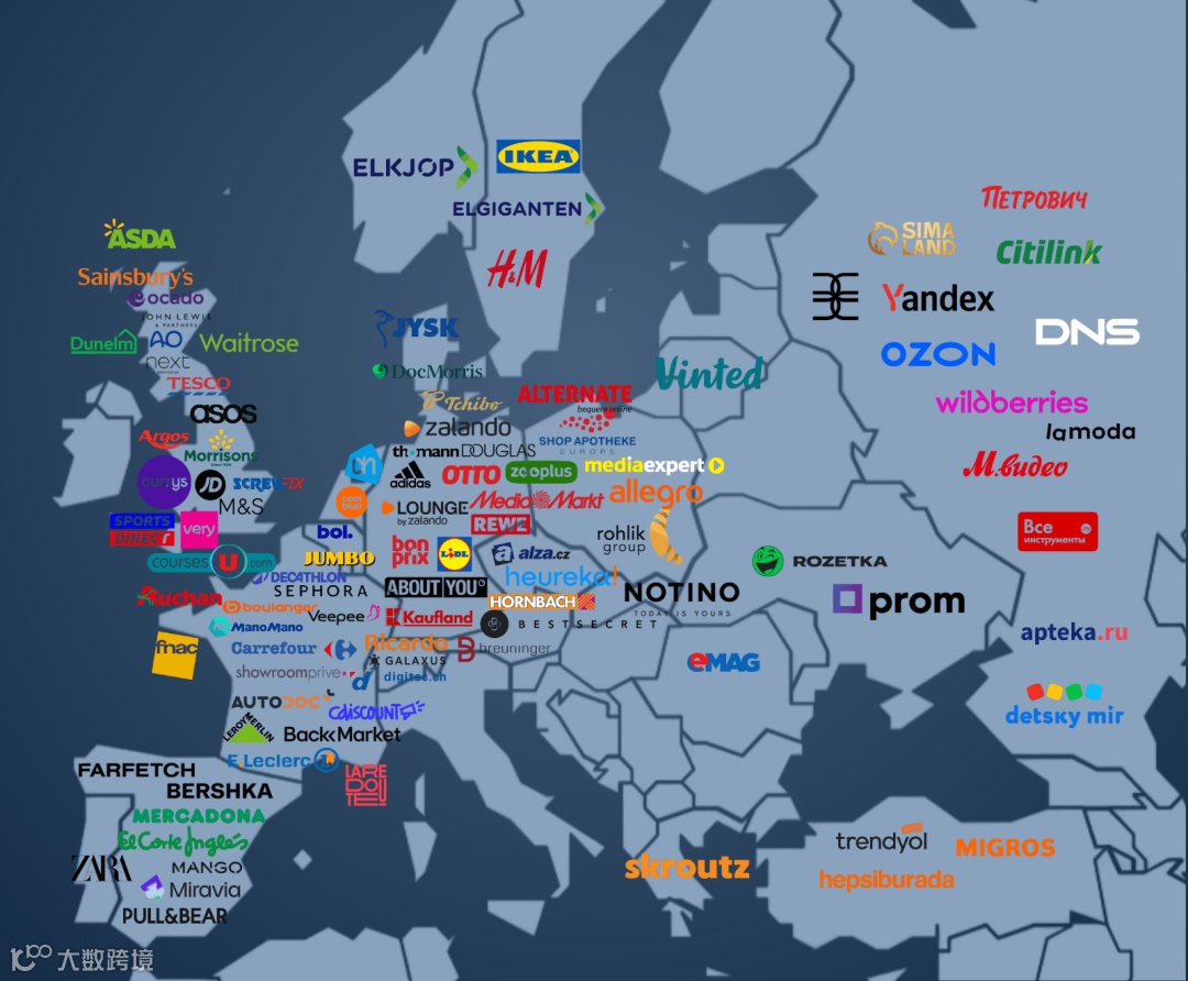 欧洲前100名在线零售商(图源:ECDB)