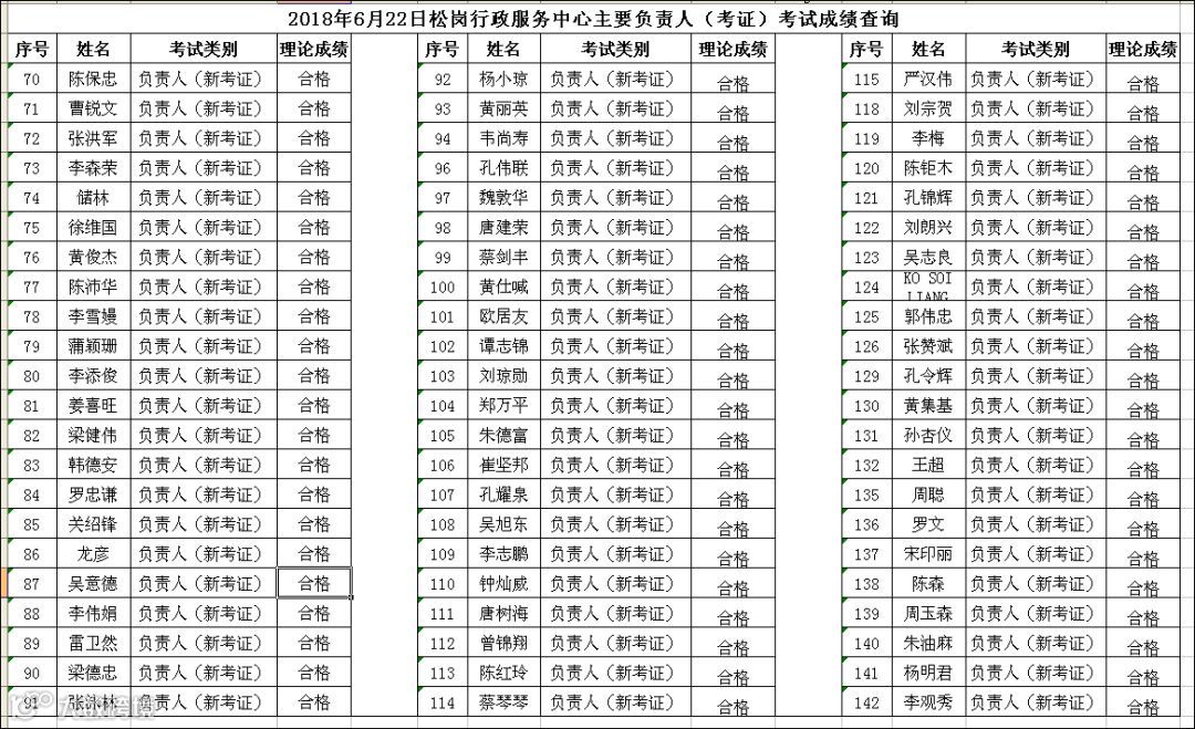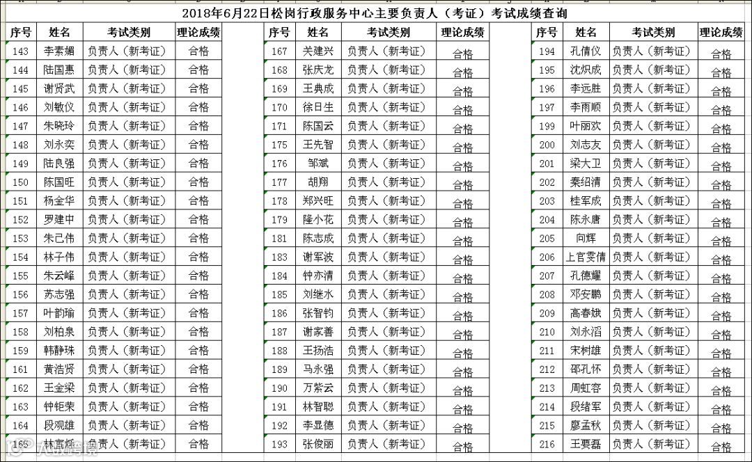 2018.06.22松岗行政服务中心主要负责人(考证)考试成绩查询
