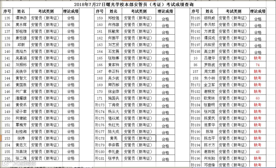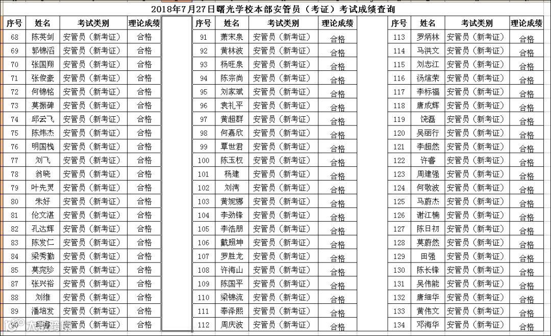 导读:2018.07.27曙光学校本部瀚天科技城安管员(考证)考试成绩查询
