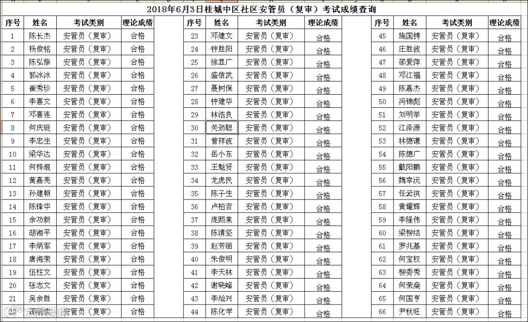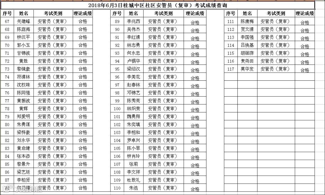 导读:2018.06.03桂城中区社区安管员(复审)考试成绩查询