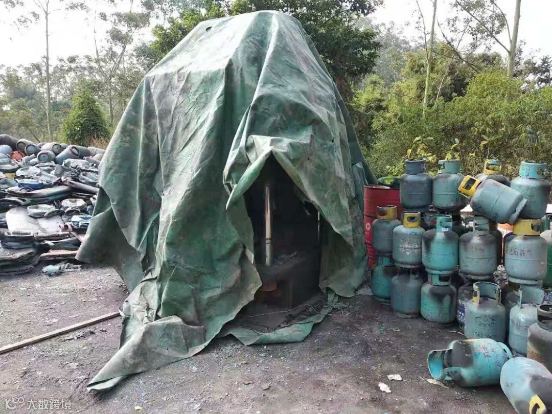 经镇派出所、区安监局更合分局、镇经促局、区市场监管局更合分局、镇消防办、镇农林渔业局、镇环保局等相关单位的联合查处,发现该窝点未办理任何相关合法手续,直接从外地运送废旧的液化石油气瓶到此处进行加工。