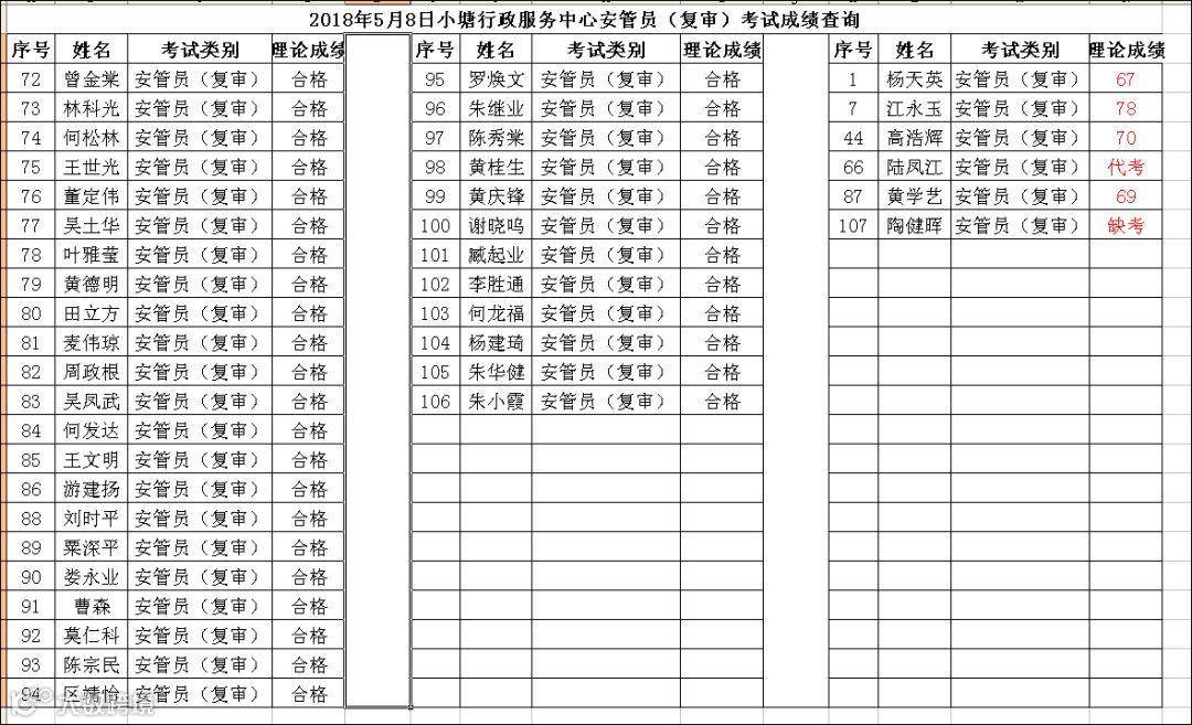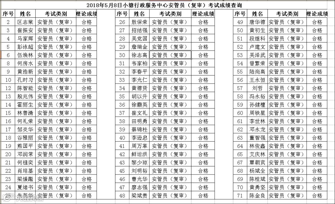 导读:2018.05.08小塘行政服务中心安管员(复审)考试成绩查询