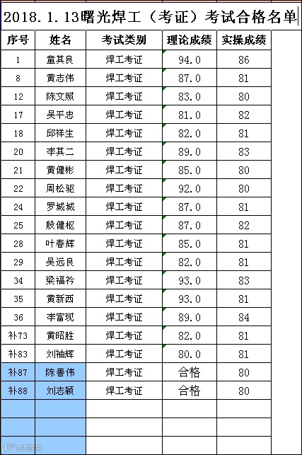 导读:2018.1.13曙光焊工(考证)考试合格名单