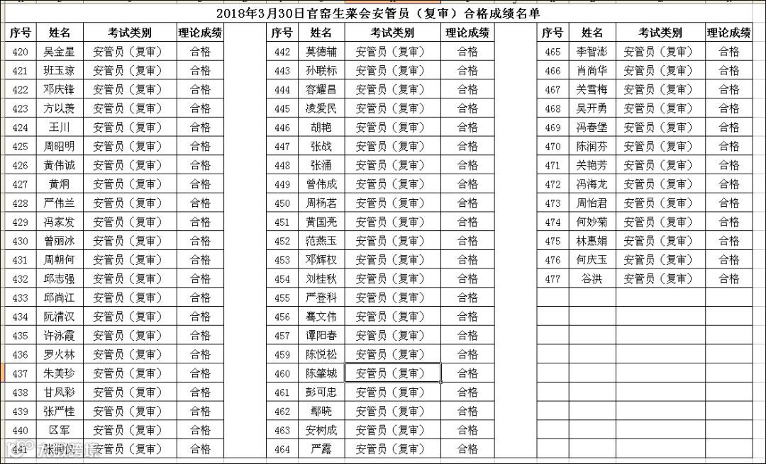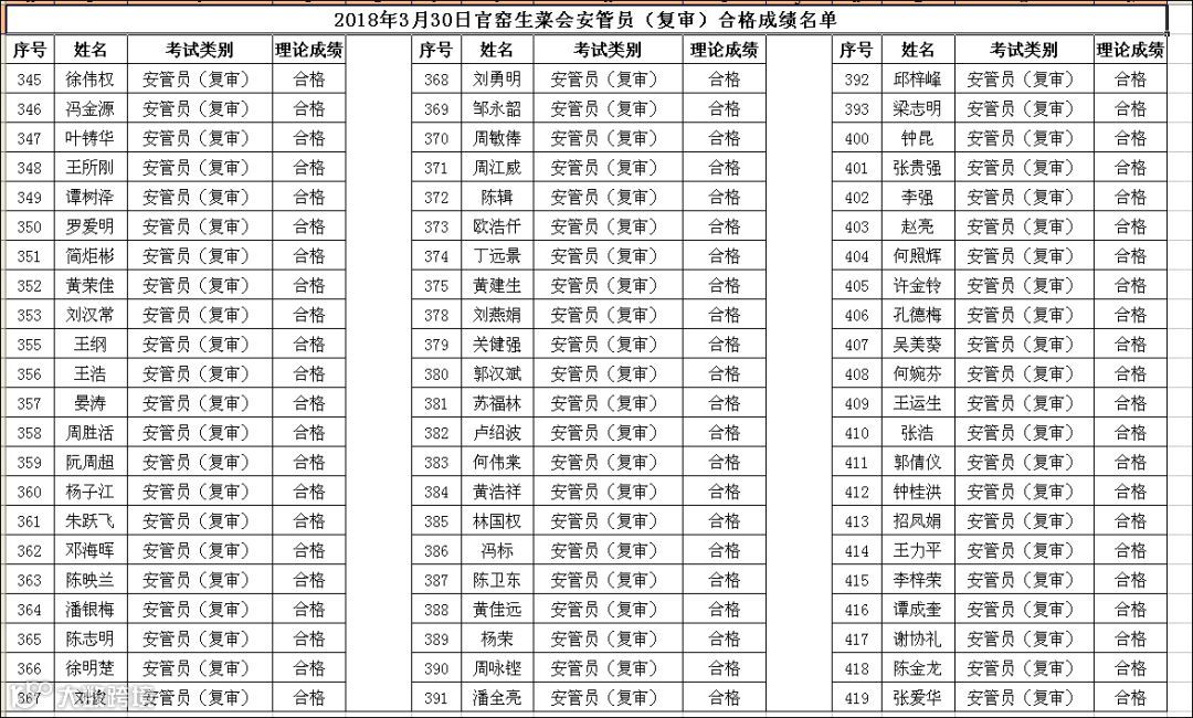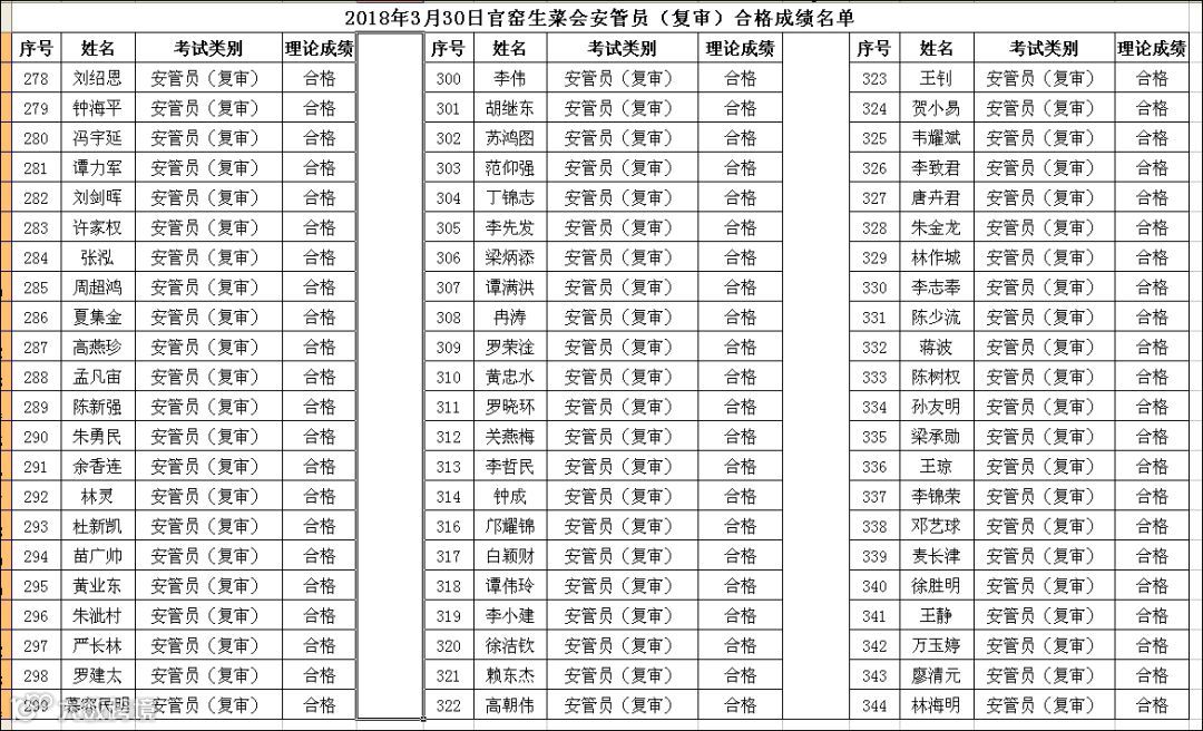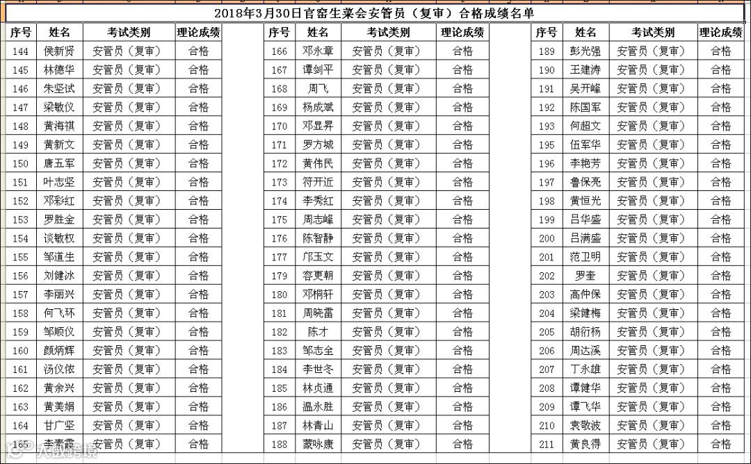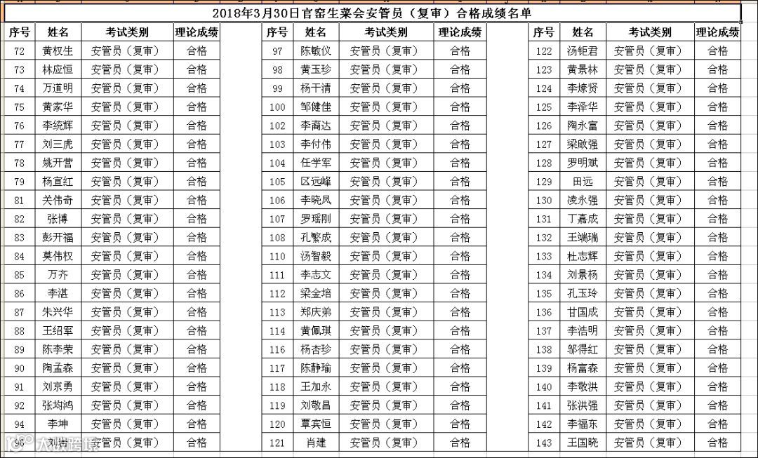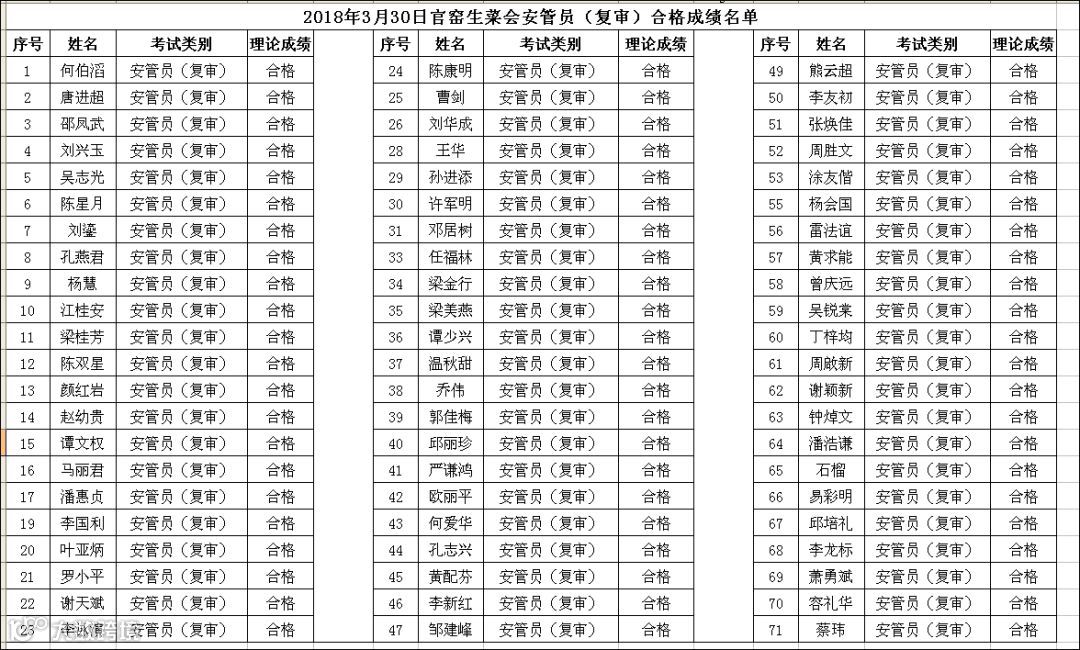 2018.03.30官窑生菜会安管员(复审)考试合格名单