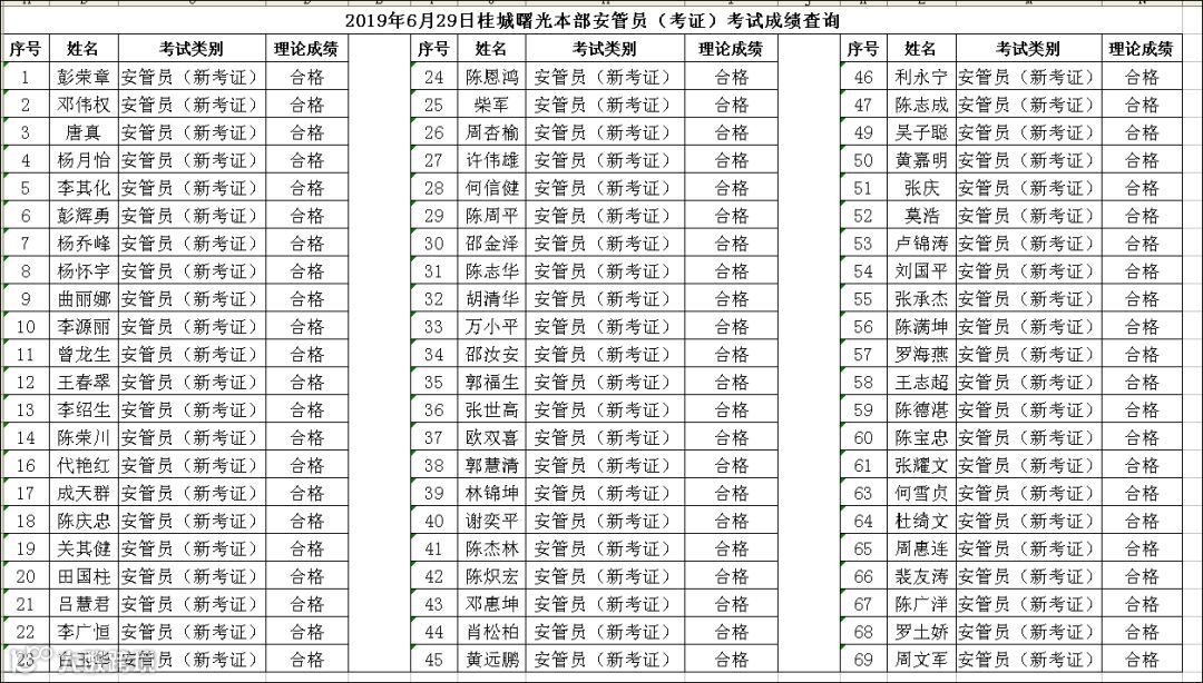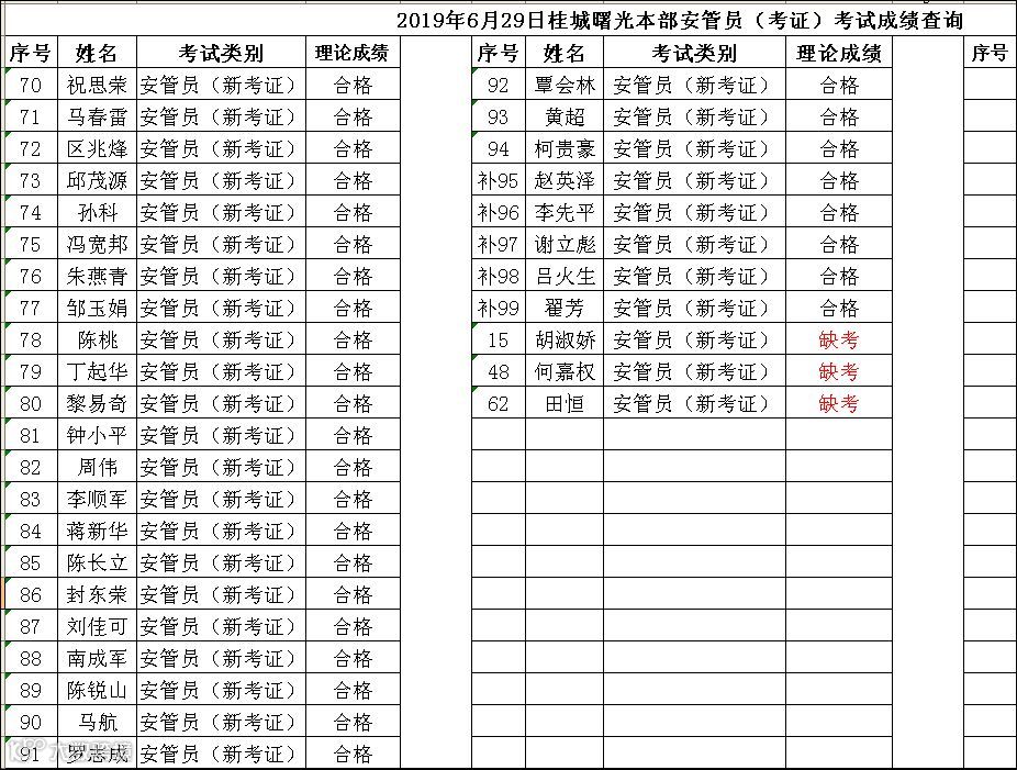 2019.06.29曙光本部安管员(考证)考试成绩查询