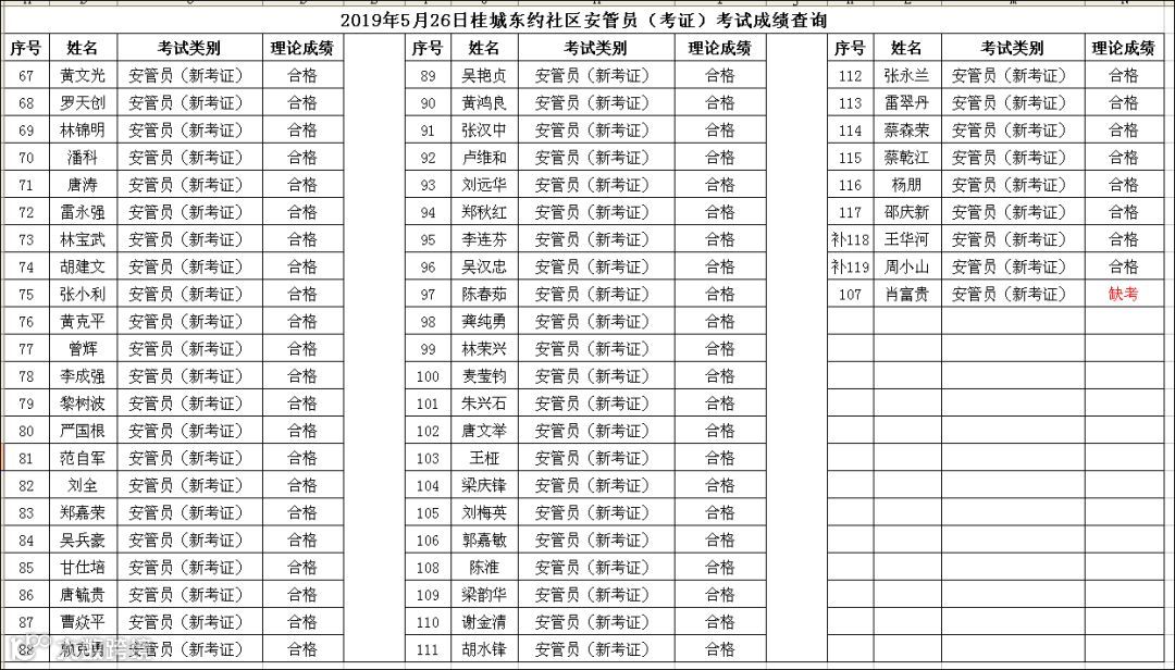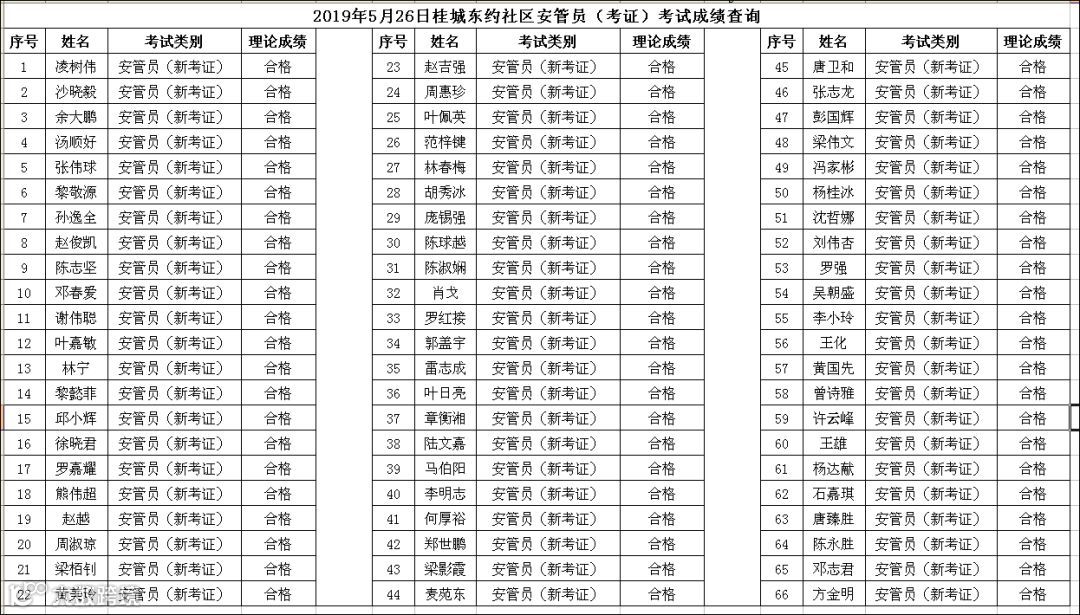 2019.05.26桂城东约社区安管员(复审)考试成绩查询