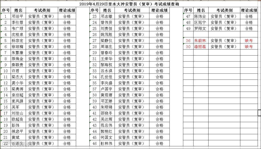 2019.04.29里水大冲安管员(复审)考试成绩查询