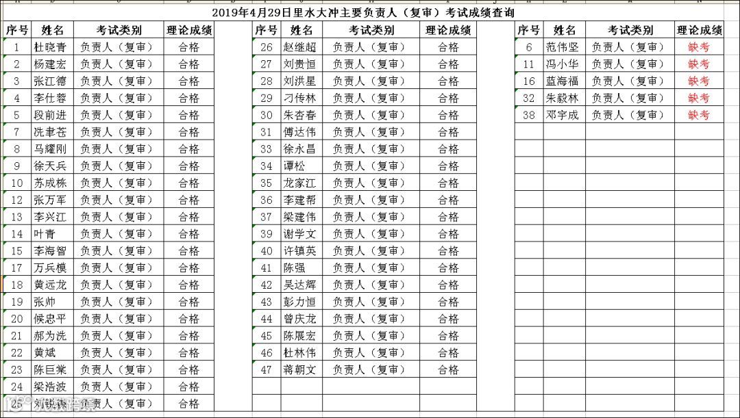 2019.04.29里水大冲主要负责人(复审)考试成绩查询