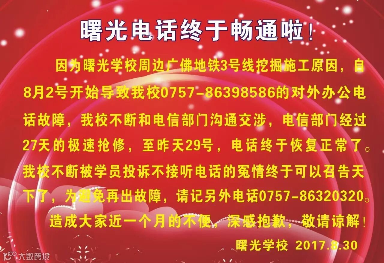 喜大普奔,曙光办公电话终于畅通啦..... 佛山市曙安安全技术服务公司