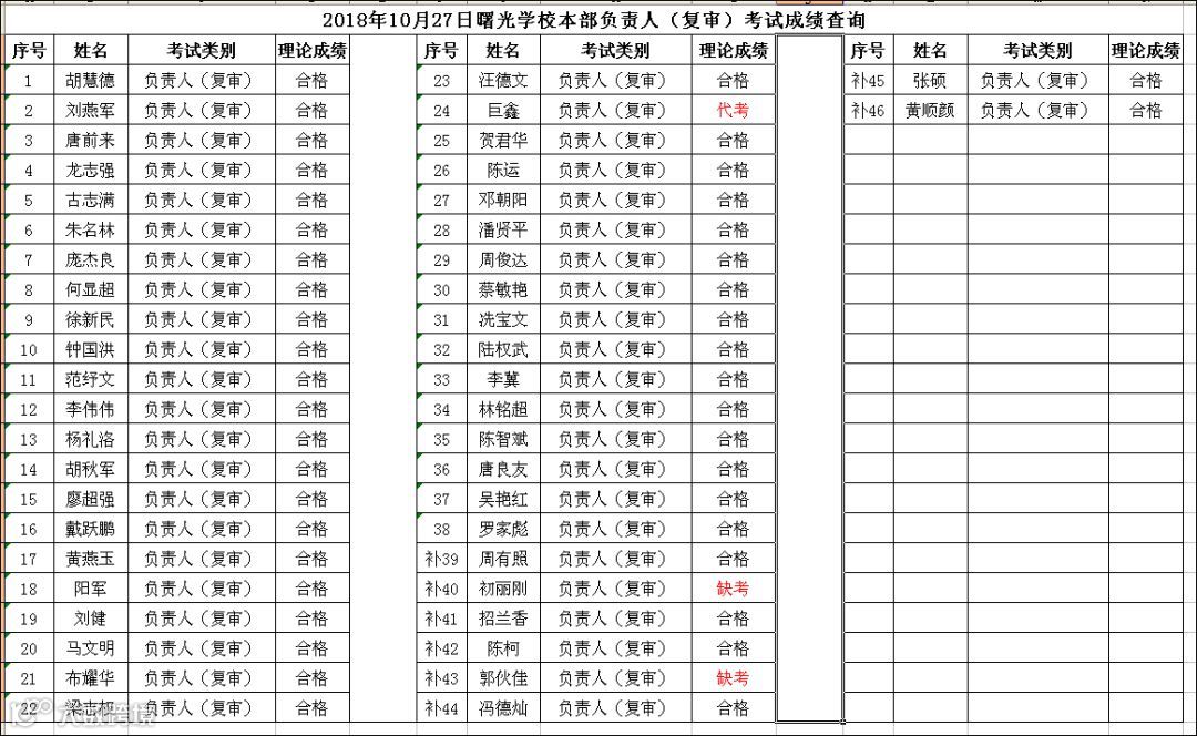 2018.10.27曙光学校本部主要负责人(复审)考试成绩查询