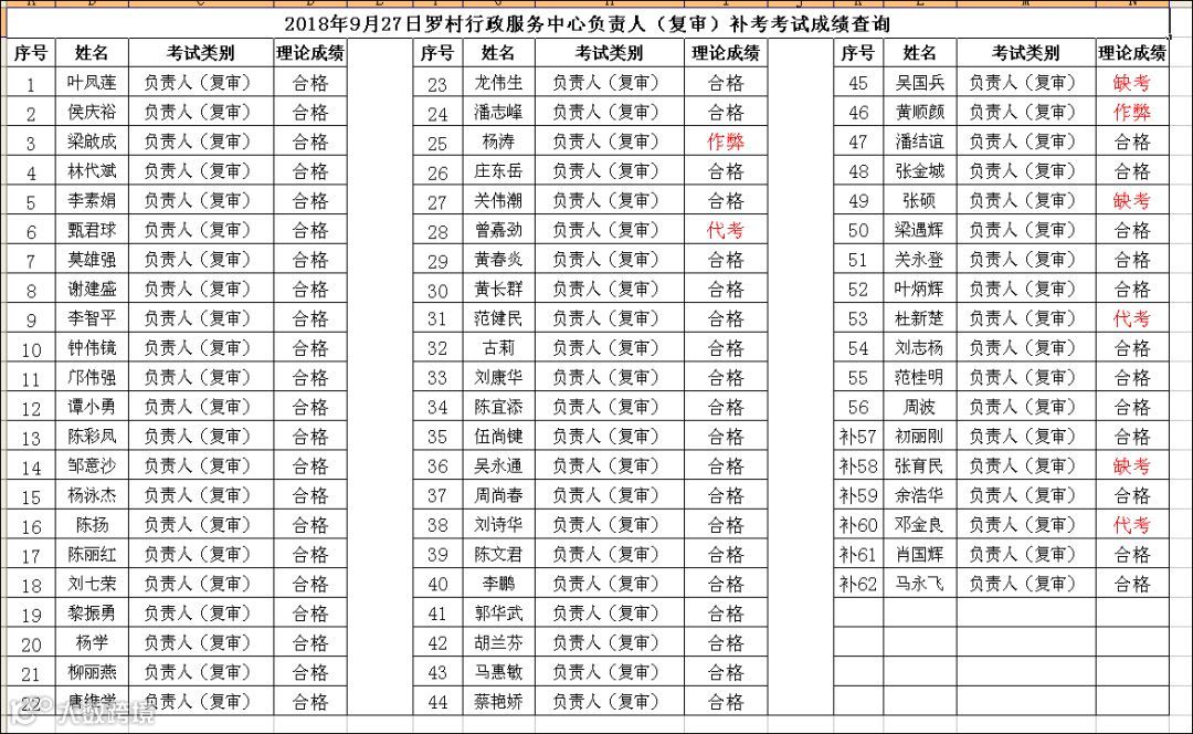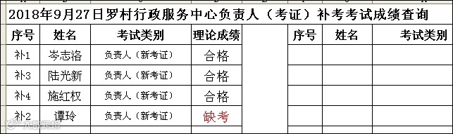 2018.09.27罗村行政服务中心负责人(考证) 考试成绩查询