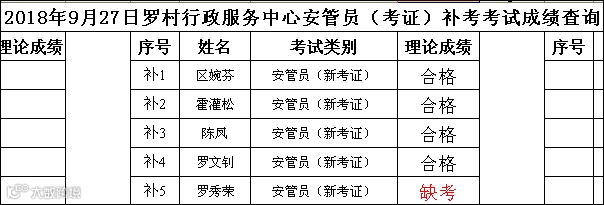 2018.09.27罗村行政服务中心安管员(考证) 考试成绩查询
