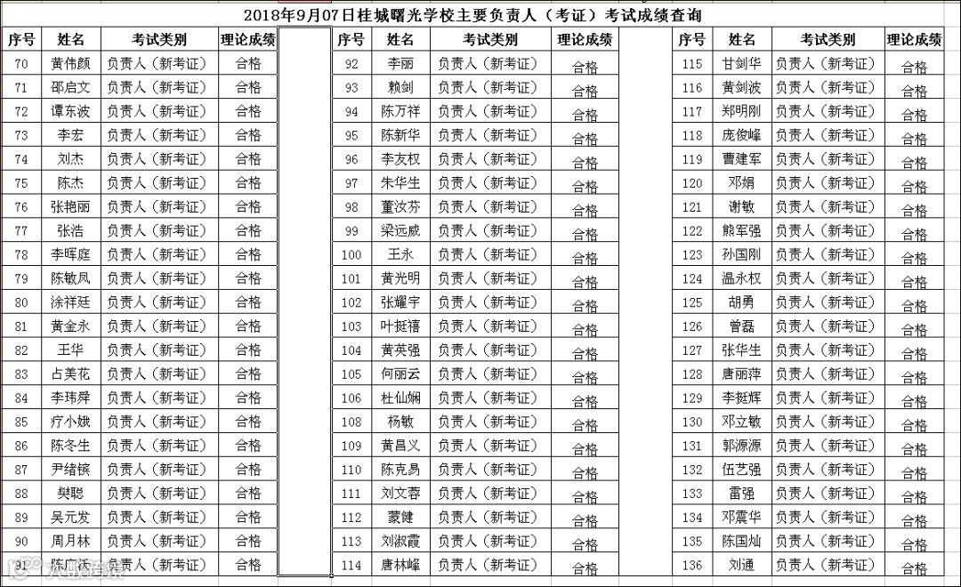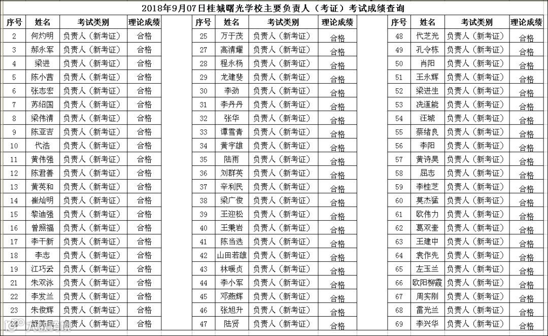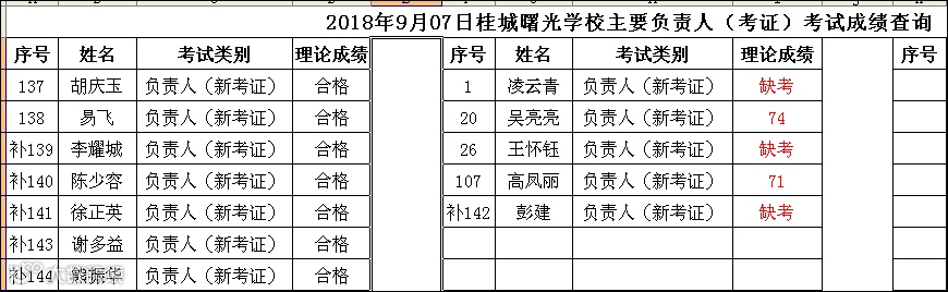 2018.09.07桂城曙光学校主要负责人(考证)考试成绩查询
