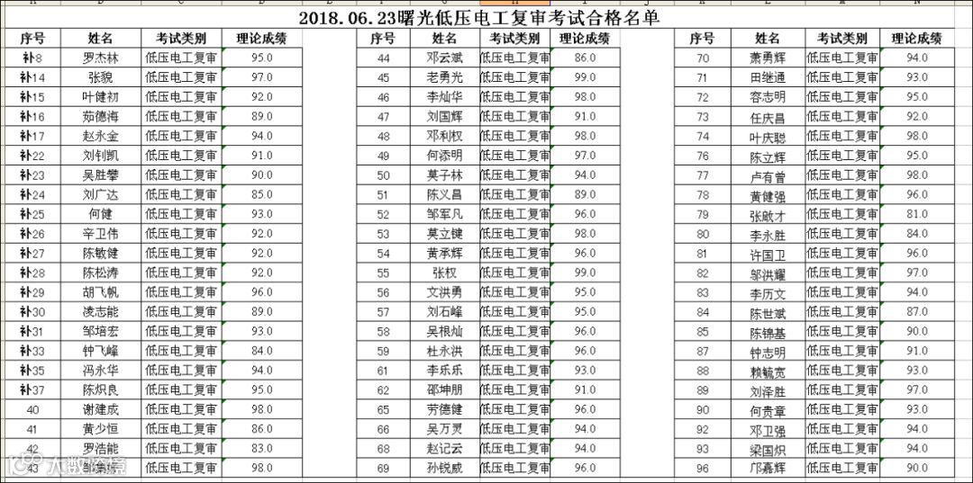 导读:2018.06.23曙光低压电工(复审)考试合格名单