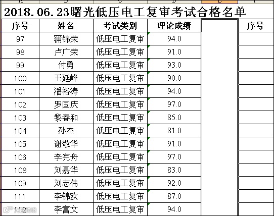 2018.06.23曙光低压电工(复审)考试合格名单