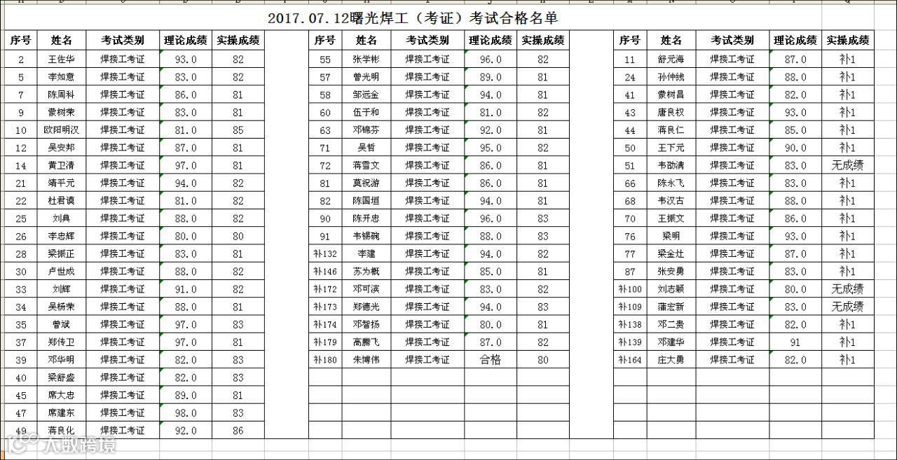 2017.7.12曙光焊工考证合格名单