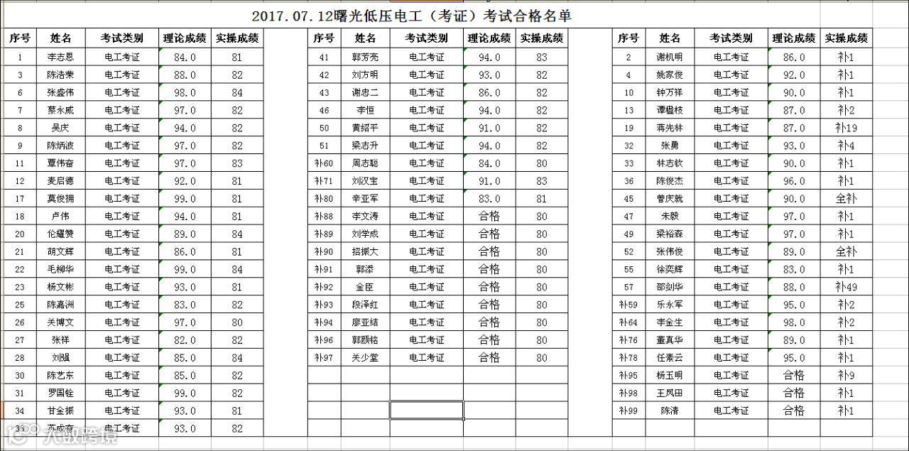 导读:2017.7.12曙光低压电工考证合格名单