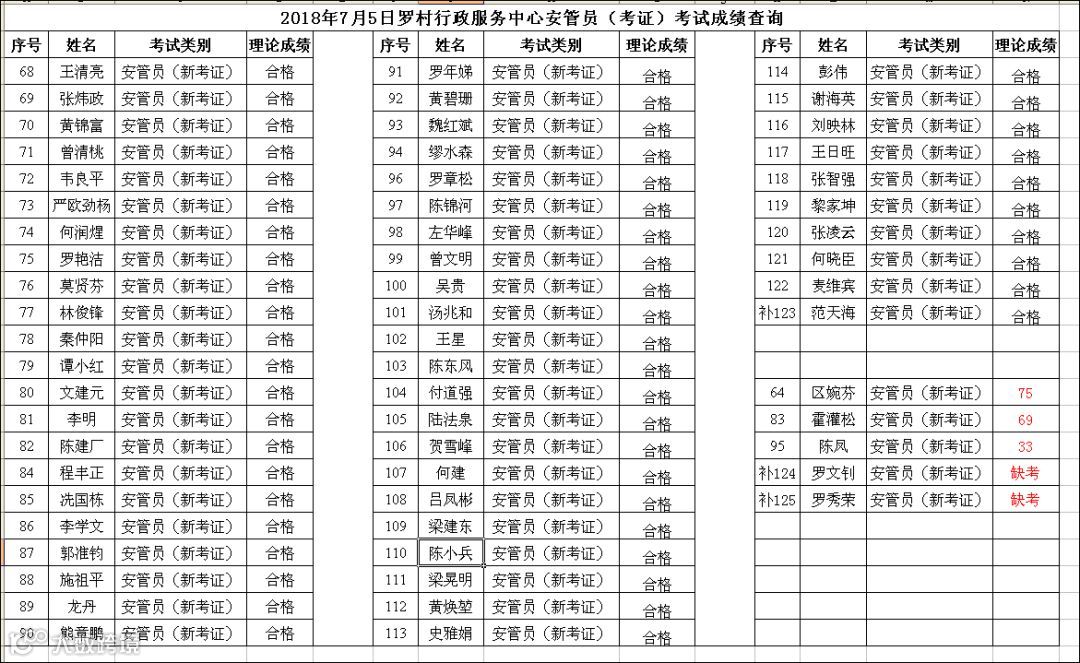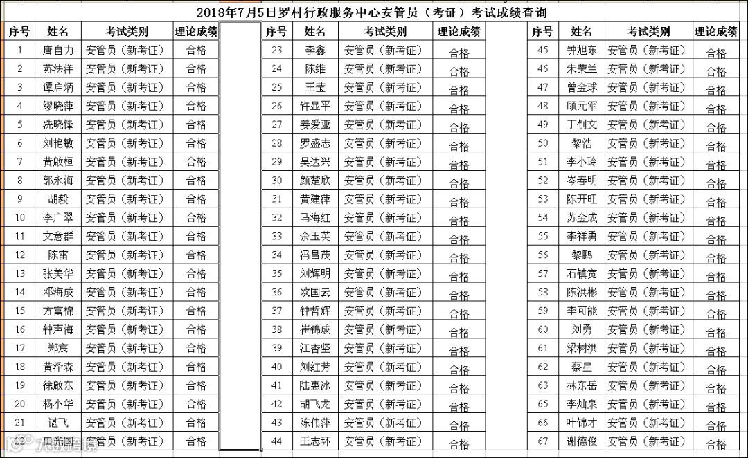 导读:2018.07.05罗村行政服务中心安管员(考证)考试成绩查询