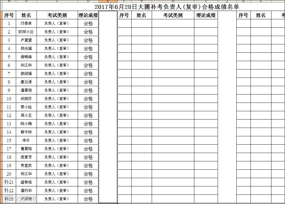 2017.06.28大圃行政服务中心负责人(复审)补考合格名单